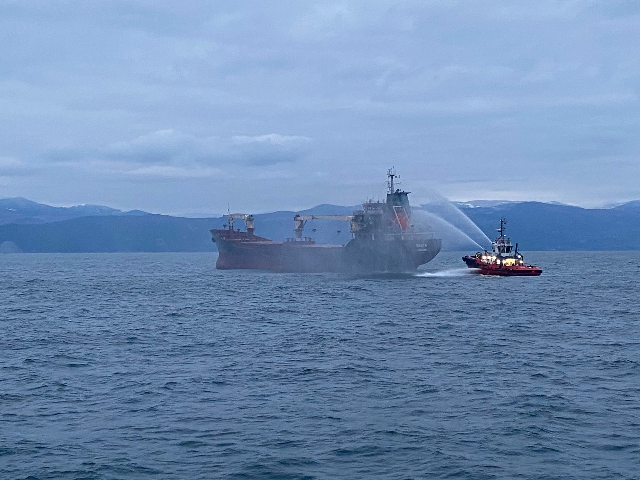 A fire broke out on the wheat-laden cargo ship ‘Kıran Asya’, anchored at Atakaş Port in Hatay’s İskenderun district. Fi-Fi equipped tugboats DP World Yarımca, Ekinciler Port, Capt. Faruk Canbolat, and Med XXVIII promptly responded to the emergency call, tackling the flames and heavy smoke. After 5 hours of coordinated efforts by Med Marine tugboats and firefighting teams from both sea and land, the fire was successfully extinguished.